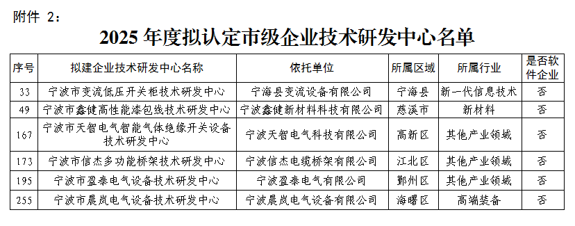 - 2025-11-19我协会6家企业列入2025年度宁波市企业技术研发中心拟认定名单
