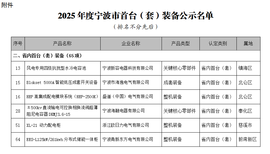 - 2025-12-31我协会6家企业列入2025年度宁波市首台(套)装备公示名单