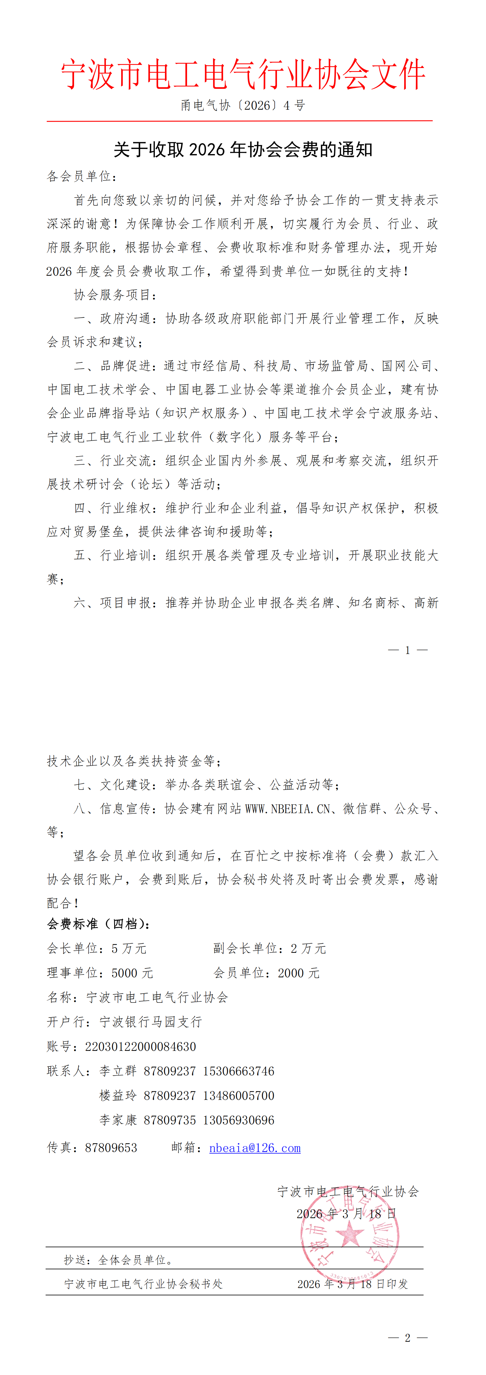 关于收取2026年协会会费的通知 - 2026-03-30